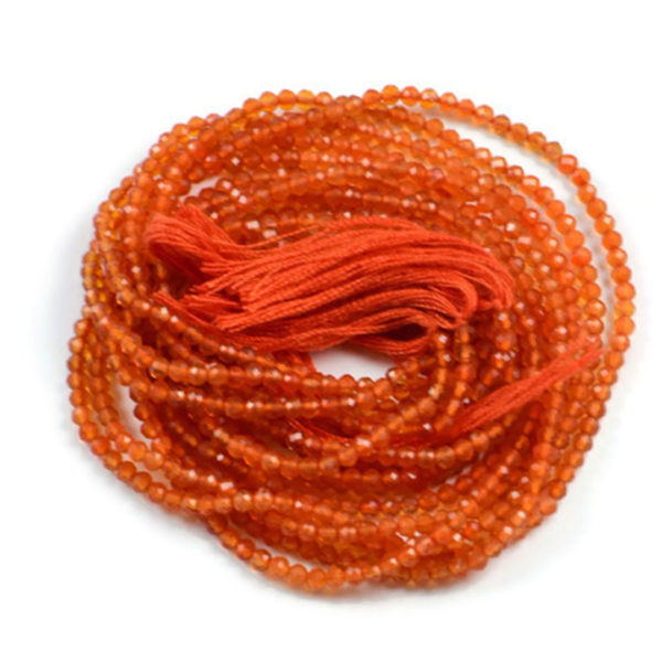 Semi Precious Micro Faceted Natural Orange Carnelian 2-2.5mm Gemstone Rondelle beads On 13 Inch Strand