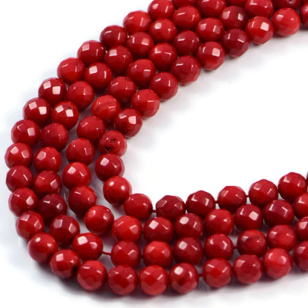 Coral 6mm Beads, Faceted Round Gemstone Beads – Jewellery Making 15″ Strand